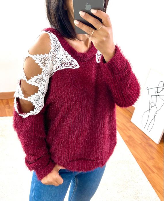 PULLOVER SCHULTER SPITZE 9168 BORDEAUX