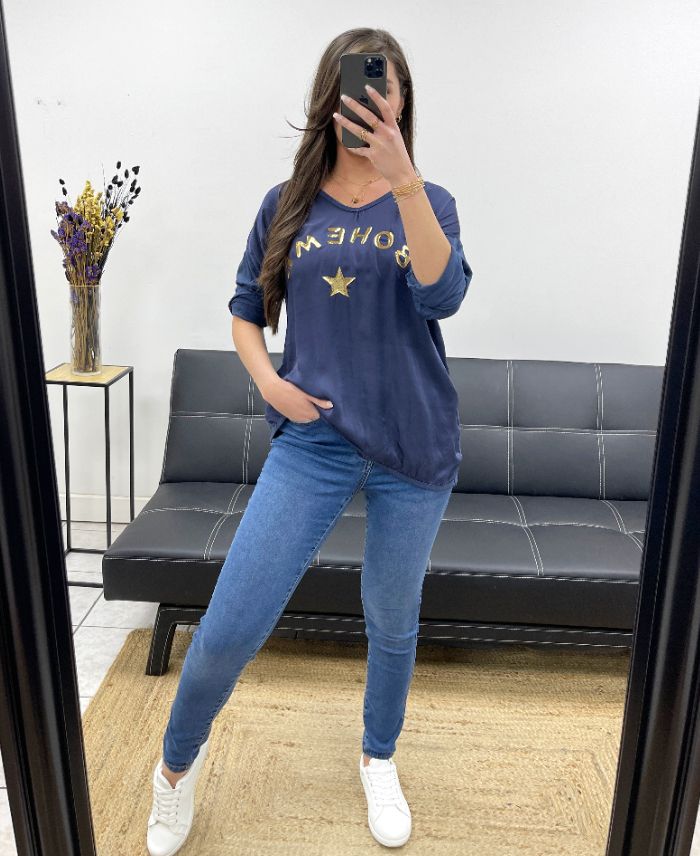 cliquez-iciT-SHIRT AUS BÖHMISCHEM BAUMWOLLSATIN PE0764 NAVY