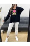 LOCKERER LEICHTER PULLOVER FLOCKING LOVE PE0298 SCHWARZ