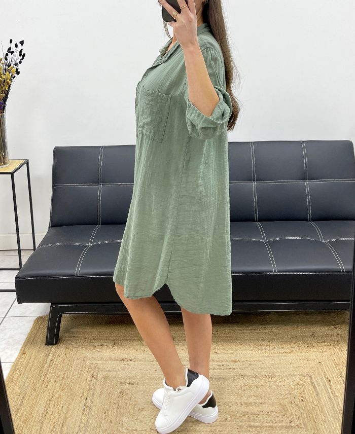 cliquez-iciHEMDBLUSENKLEID AUS BAUMWOLLGAZE PE0353 KHAKI