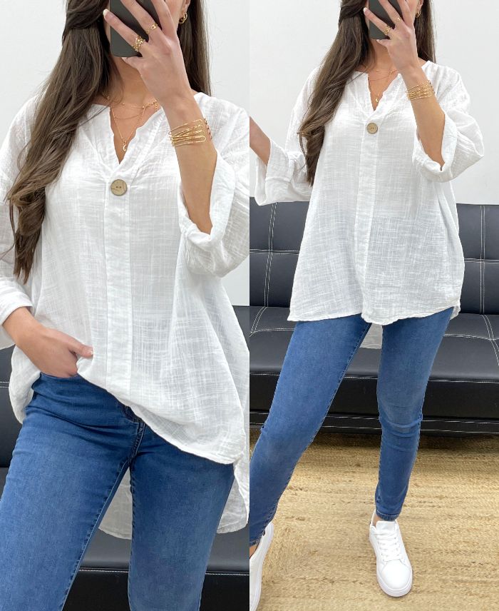 cliquez-iciOVERSIZE-TUNIKA BAUMWOLLE GAZE KNOPF PE0386 WEISS