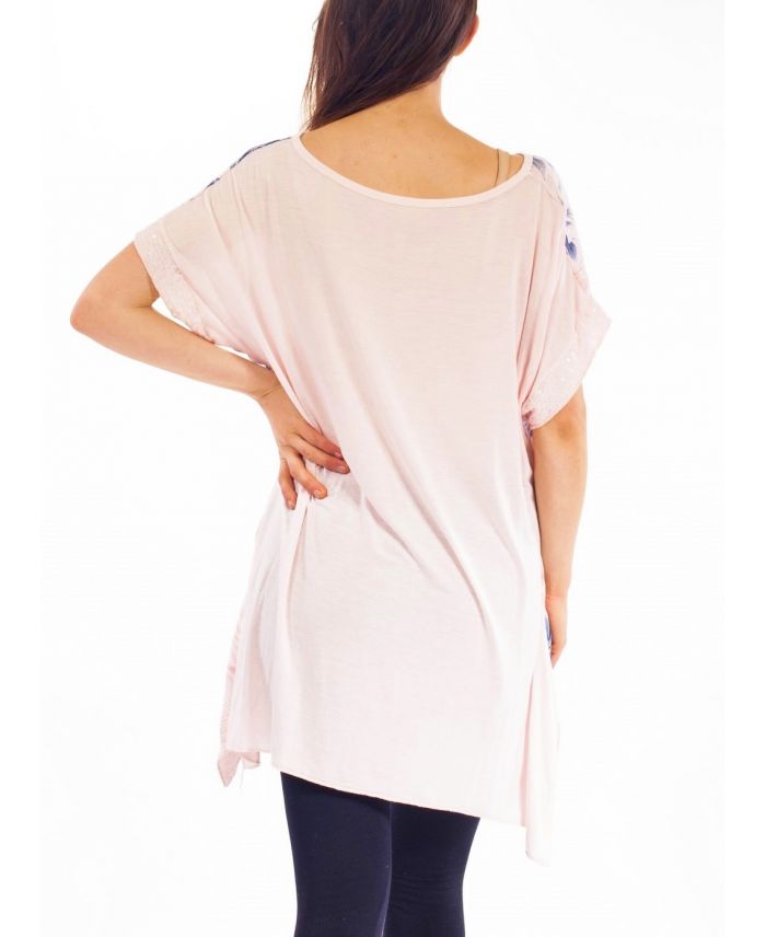 Die TUNIKA HAT BLUMEN UND PAILLETTEN S9282 ROSA