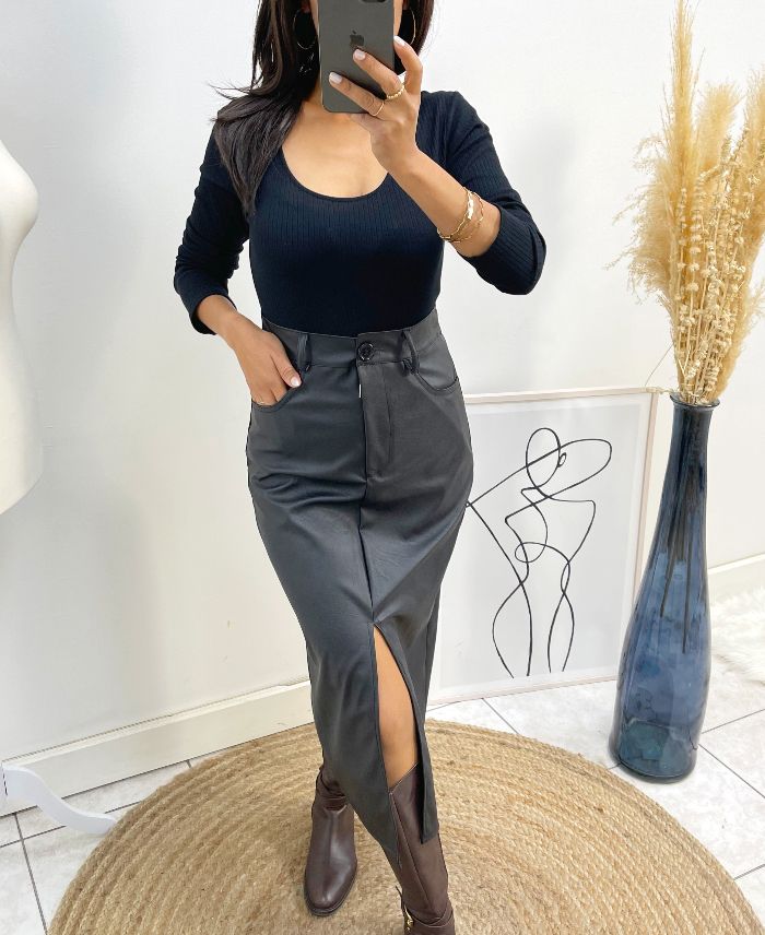 PACKUNG 3 LANGE RÖCKE SCHLITZ S-M-L AH466 SCHWARZ