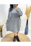 cliquez-iciOVERSIZE-MAXIKLEID AUS ZOPFSTRICK AW515 GRAU