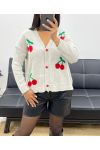 cliquez-iciKIRSCHROTE KURZE STRICKJACKE MIT ROTEN AH250407 BEIGEN KNÖPFEN