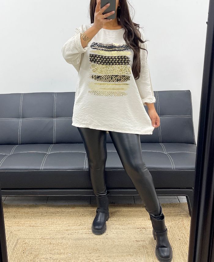 LOSE VISKOSE BEFLOCKUNG TOP PE0400 BEIGE