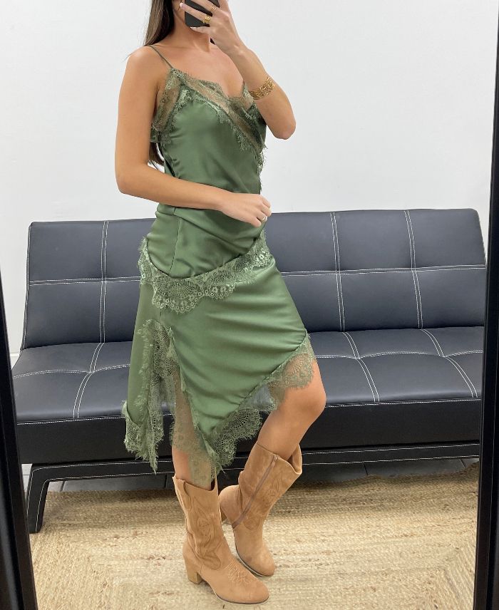 ASYMMETRISCHER ROCK AUS SATIN AUS SPITZE AH36284 KHAKI