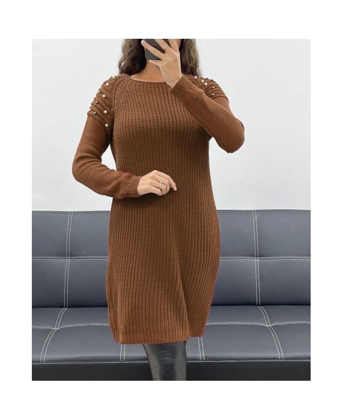 cliquez-iciSCHOKOLADENFARBENER AH2555094 PULLOVER AUS PERLENBESETZTEM STRICKKLEID