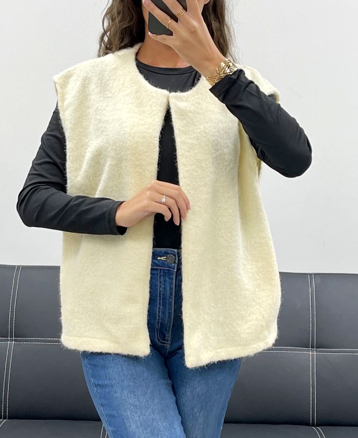 JACKE AUS WEICHEM FLOR AUS WOLLE 2 TASCHEN AH555019 ECRU