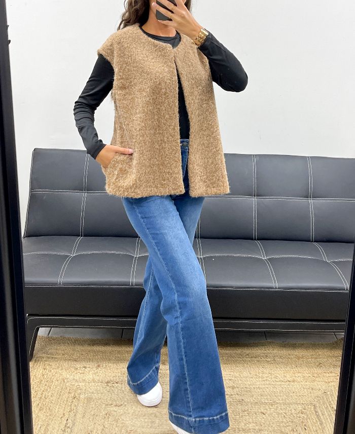 JACKE AUS WEICHEM FLOR AUS WOLLE 2 TASCHEN AH555019 CAMEL