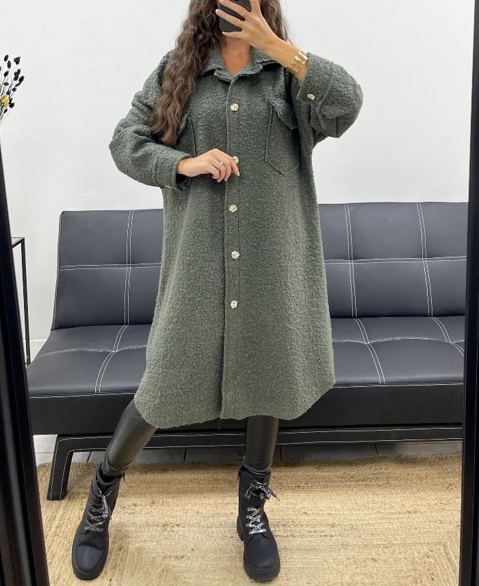 LANGES OVERSHIRT MIT LOCKIGEM WOLLEFFEKT AH2555031 KAKI