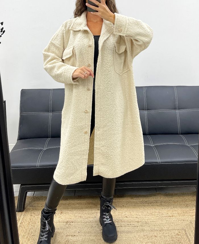 LANGES OVERSHIRT MIT WOLLEFFEKT LOCKIG AH2555031 BEIGE