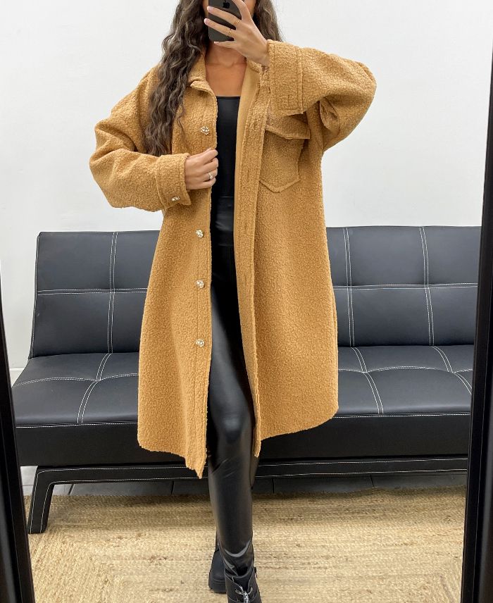 LANGES OVERSHIRT MIT LOCKIGEM WOLLEFFEKT AH2555031 CAMEL
