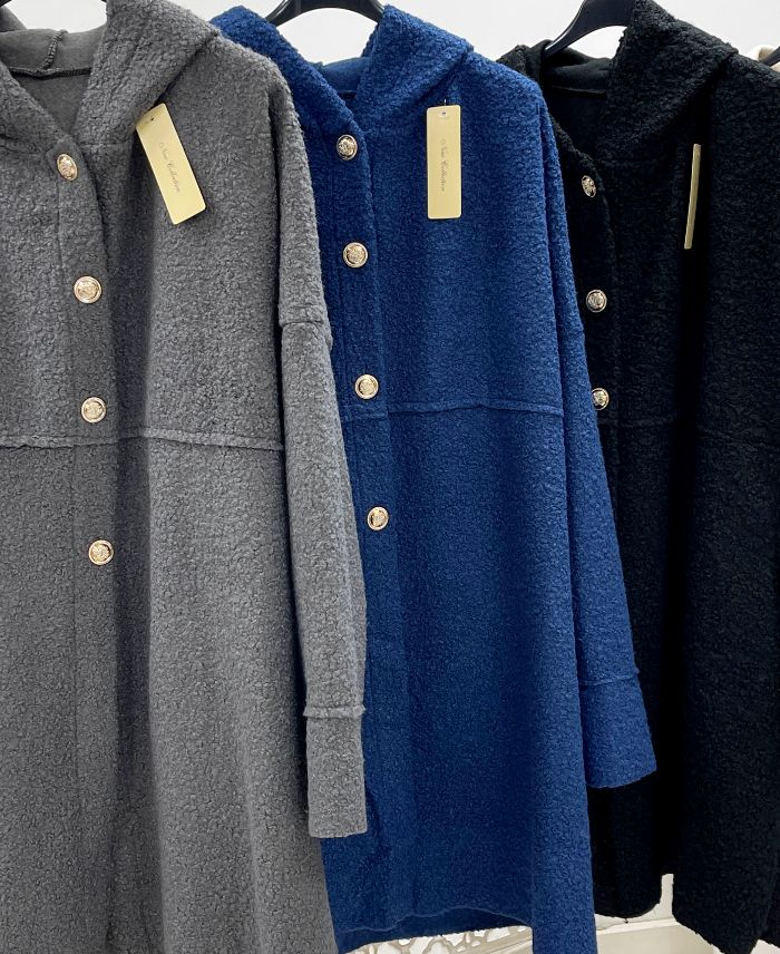 PLUS SIZE MANTEL MIT KNÖPFEN 2 TASCHEN AH255074 BLAU