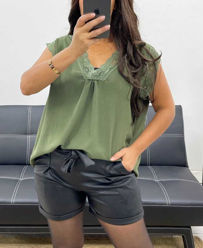 LOCKERES TOP AUS SPITZENHEMD AH255020 KHAKI