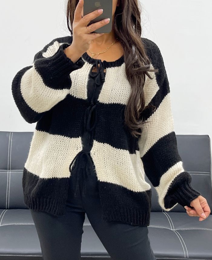 WEICHER GESTREIFTER CARDIGAN PULLOVER AH255061 SCHWARZ