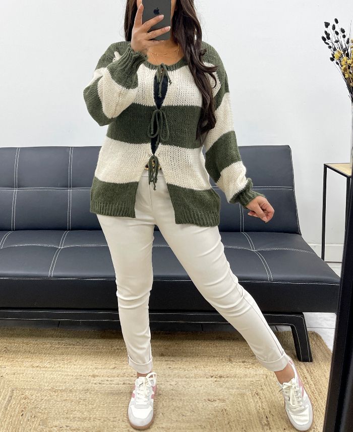 WEICH GESTREIFTER CARDIGAN PULLOVER AH255061 KHAKI