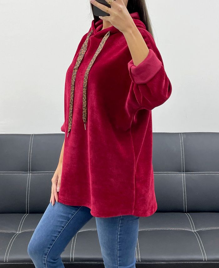 KAPUZENPULLOVER AUS LEOPARDENSAMT AH255197 BURGUND