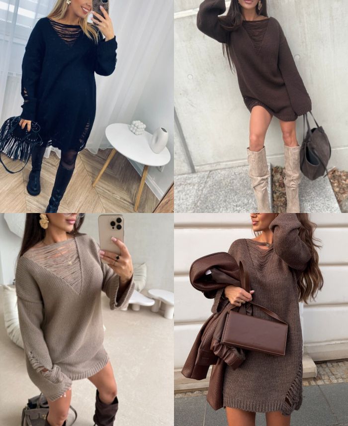 cliquez-iciDESTROY AH255200 BURGUNDERFARBENER KLEID PULLOVER