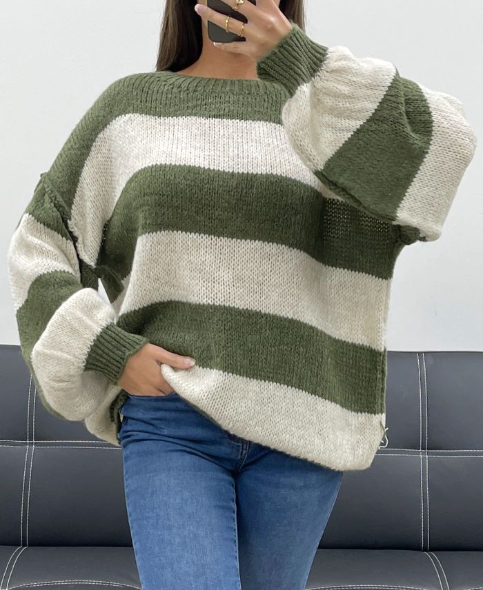 OVERSIZE-PULLOVER MIT STREIFEN AH255212 KHAKI