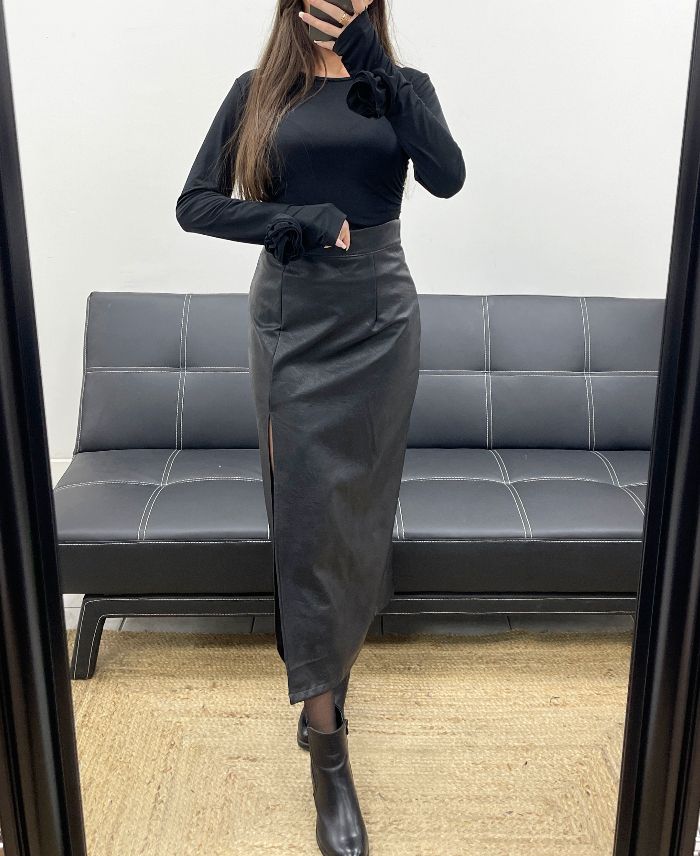 3-PACK LANGE RÖCKE, IMITATLEDER S-M-L AH250737 SCHWARZ
