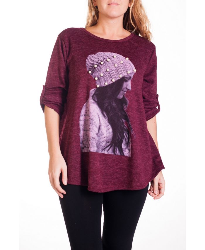 GROßE PULL DRUCKT FRAU 4344 BORDEAUX