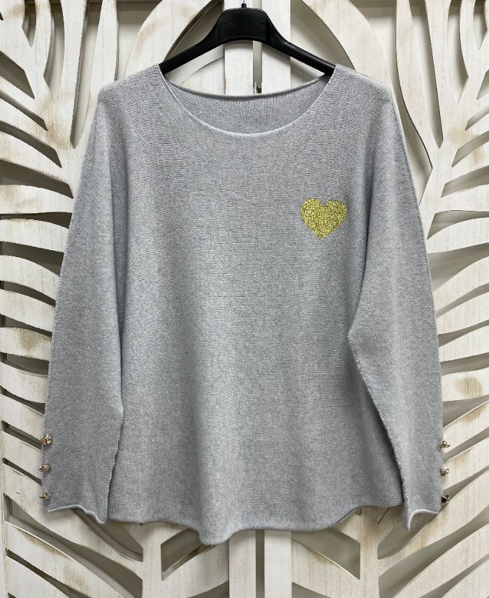 HERZPULLOVER MIT KNOPFÄRMELN PE2354 GRAU