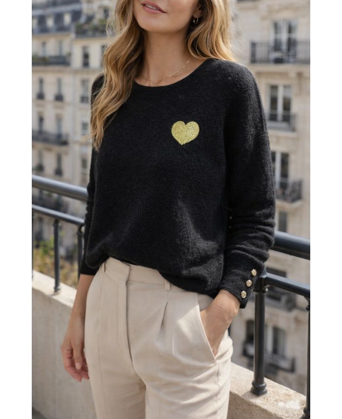 HERZPULLOVER MIT KNOPFÄRMELN PE2354 SCHWARZ