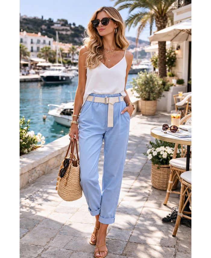 2-TASCHEN-ELASTISCHE TAILLENHOSE + PE2401 BUND HIMMELBLAU