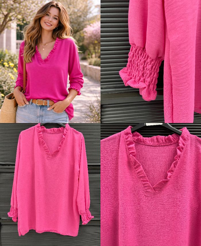 ÜBERGROSSE BLUSE MIT ELASTISCHEN ÄRMELN PE2447 FUSHIA
