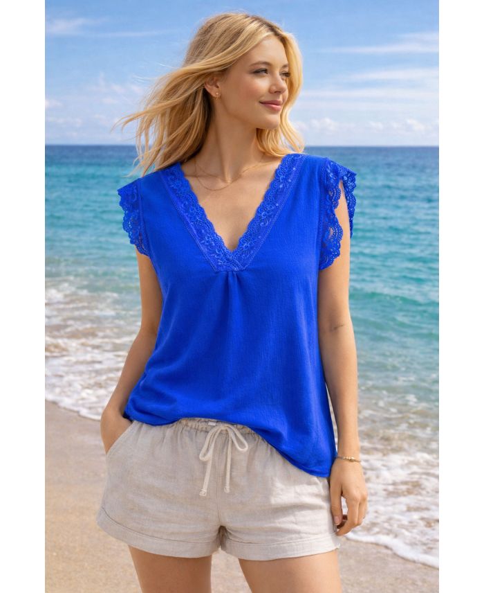ÜBERGROSSES CAMISOLE-SPITZENOBERTEIL PE2463 KÖNIGSBLAU