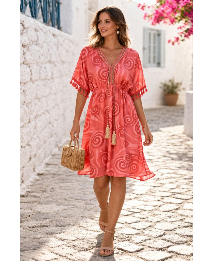 KLEID MIT KORALLEN-POMPOM-MUSTER PE260669