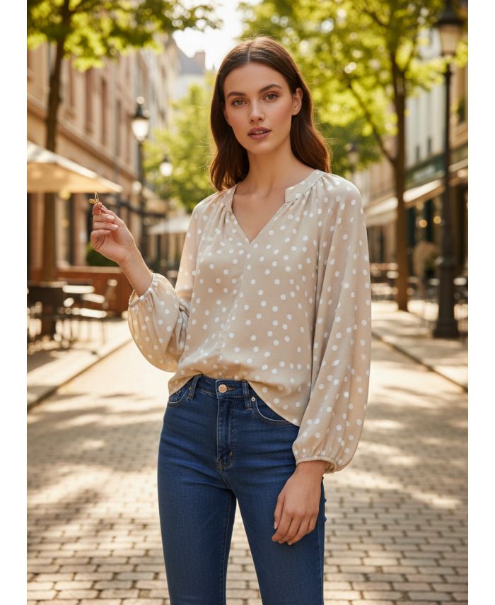 BLOUSE MIT GEPUNKTETEM PRINT PE2095 BEIGE