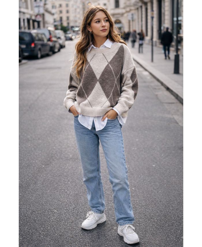 PE2115 DIAMANT-STRICKPULLOVER BEIGE