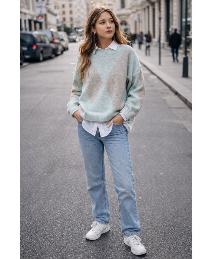 PE2115 GRÜNER DIAMANT-STRICKPULLOVER
