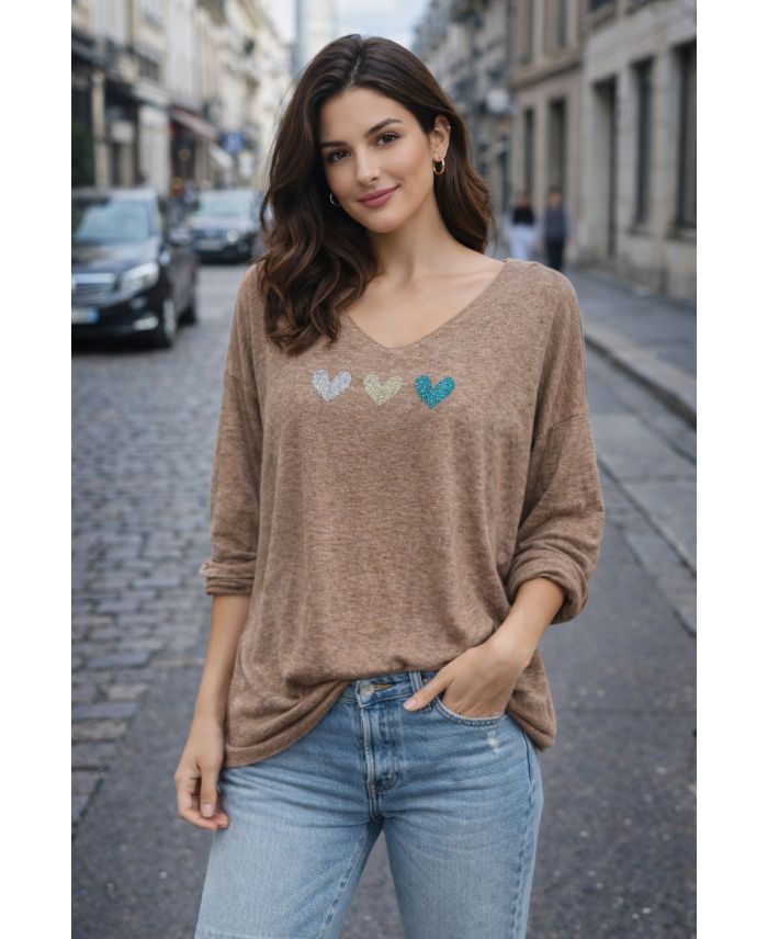 LEICHTER HERZPULLOVER PE2121 TAUPE