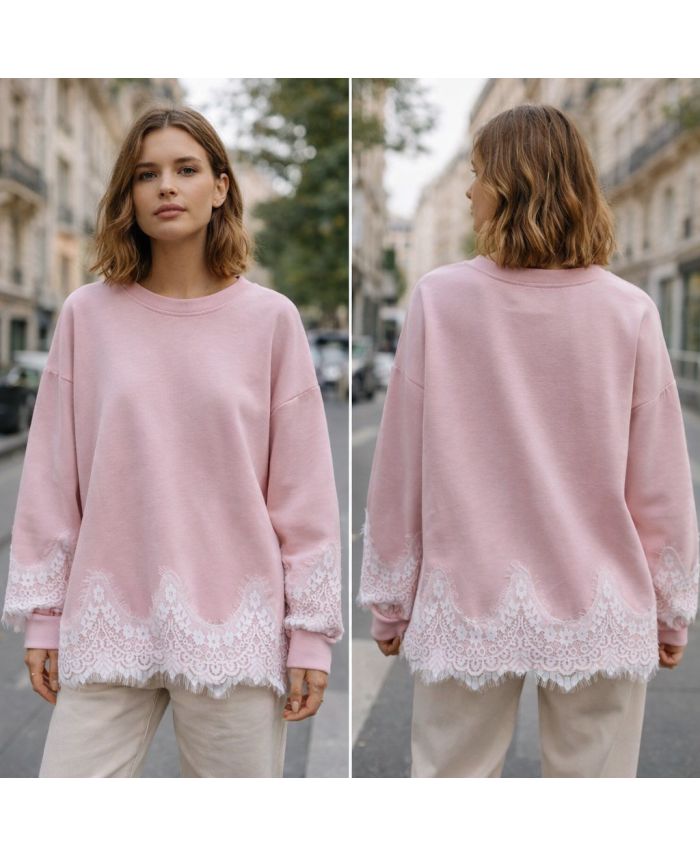 ÜBERGROSSER SPITZENPULLOVER PE2181 PINK