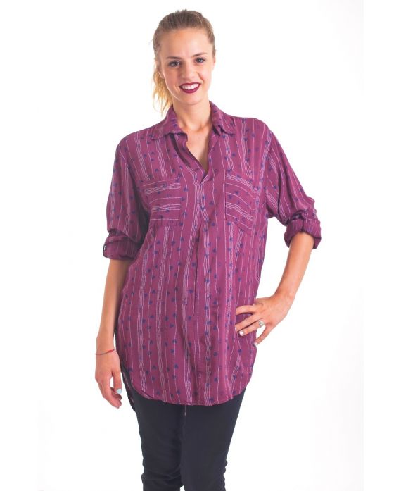 SHIRT HEART MOTIF 4038 BORDEAUX