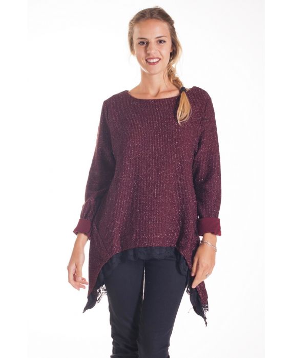 SWEATER TUNIC LACE 4136 BORDEAUX