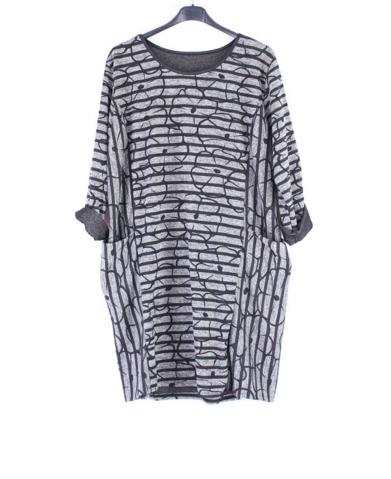 LARGE SIZE SWEATER POCKETS FLOWERS 0325 GREY