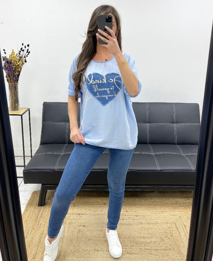 BI-MATERIAL T-SHIRT COEUR JEANS PE0750 SKY BLUE