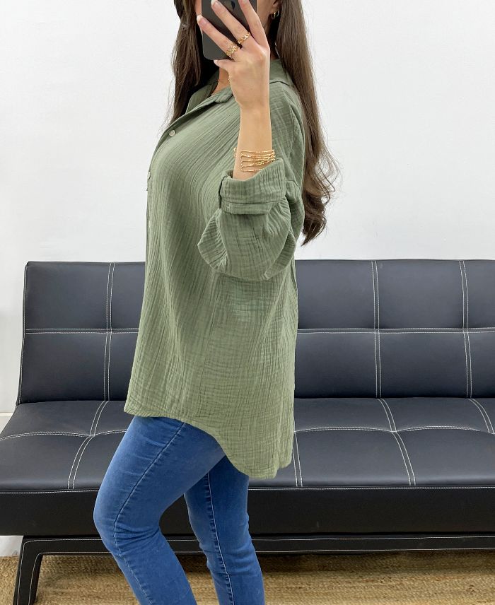 POCKET COTTON GAUZE SHIRT PE0193 KHAKI