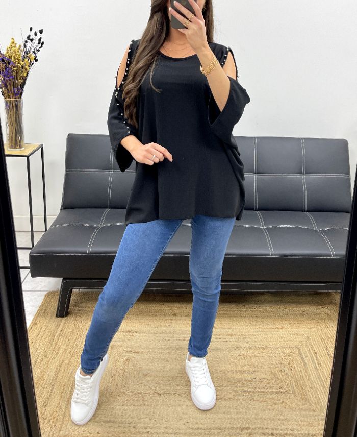 OVERSIZED STUDDED TOP BEADED PE0249 BLACK