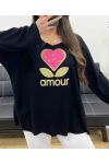 LOOSE LIGHTWEIGHT SWEATER FLOCKING LOVE PE0298 BLACK