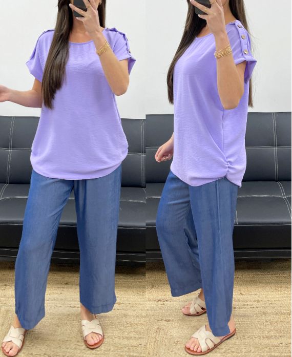 FLUID SHOULDER TOP WITH BUTTONS PE1214 LILA
