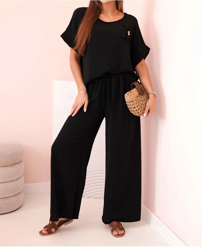 LOOSE SET JEWEL FLOWER TOP + PANTS PE2173 BLACK