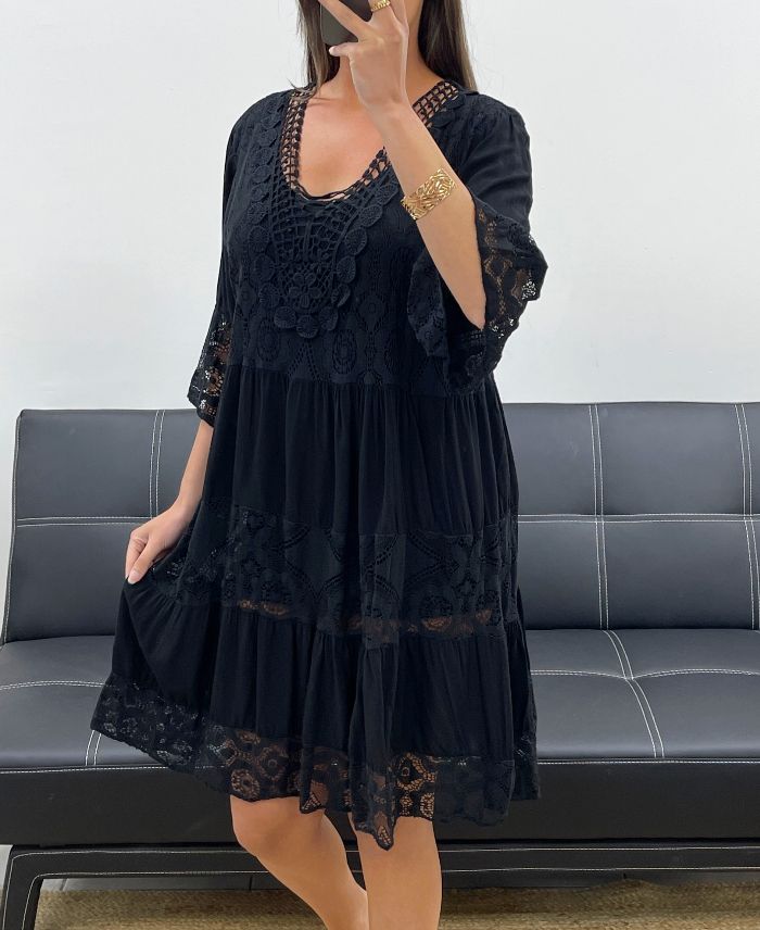 "BOHEMIAN COLLECTION" V-NECK LACE DRESS PE2382 BLACK