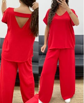 OPEN BACK TOP SET + JEWEL WIDE LEG PANTS PE2502 LEMON GREEN
