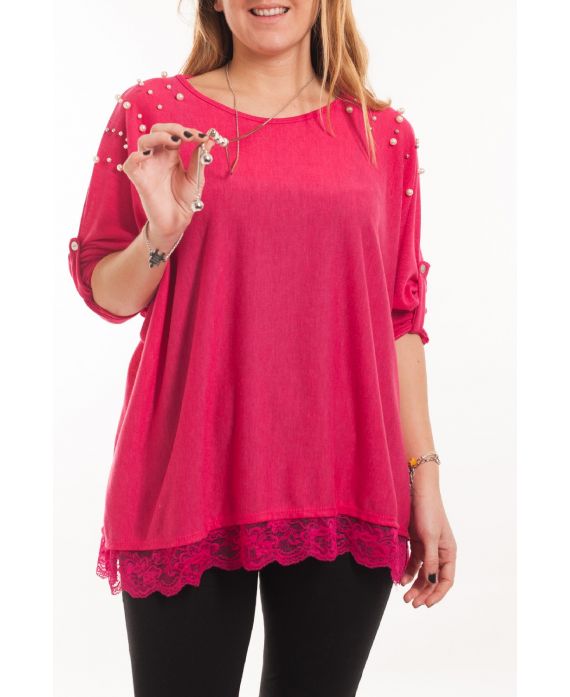 LARGE SIZE TUNIC BEADED + GEM 5066 FUSHIA