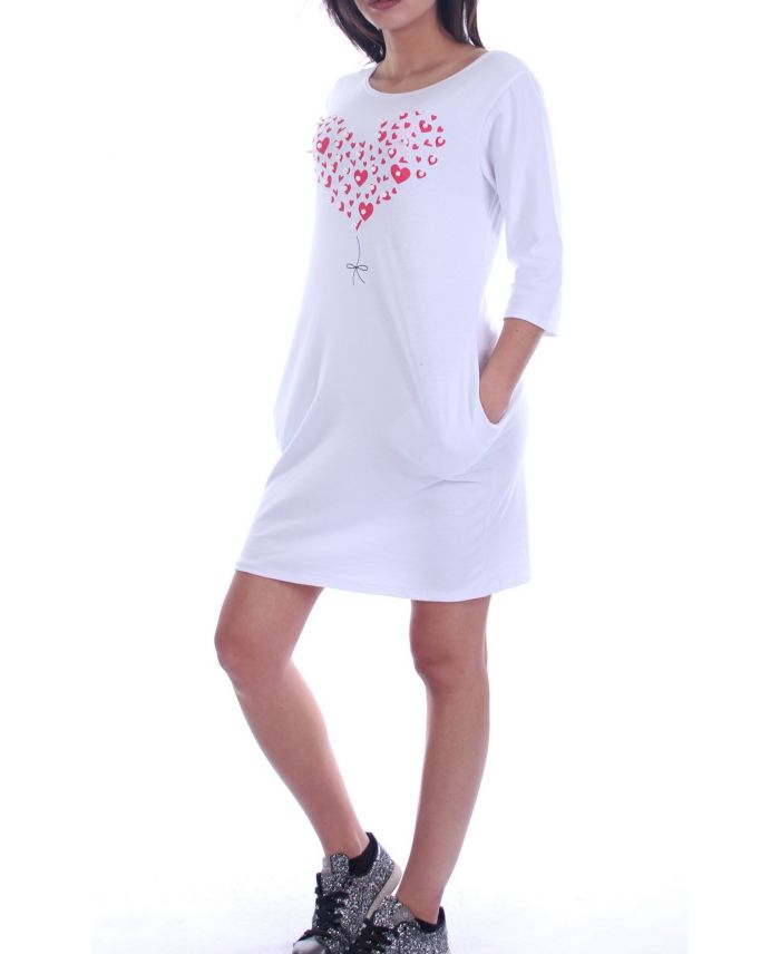 TUNIC DRESS HEART PEARL 7045 WHITE